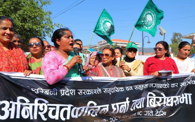 लुम्बिनीमा वन पैदावार कर खारेजीको माग गर्दै अनिश्चितकालीन धर्ना