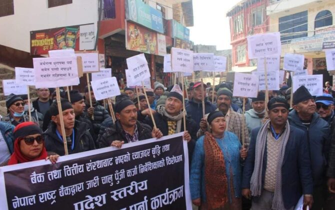 वित्तिय क्षेत्रकाे लापरबाहि विरुद्ध प्यूठानका व्यवसायीहरु आन्दाेलित