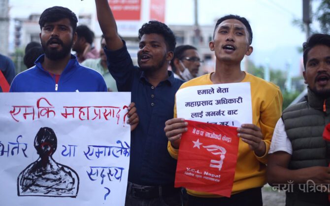 एमाले नेता (गभर्नर)काे बिराेधमा अखिलकाे प्रदर्शन