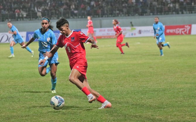 ११ कार्तिक, काठमाडौं टाइब्रेकरमा भारतलाई पराजित गर्दै नेपाल साफ महिला च्याम्पियनसिपको फाइन्लमा प्रवेश गरेको छ। त्रिपुरेश्वरस्थित दशरथ रगंशालामा भएको दोस्रो सेमिफाइनलमा भारतलाई टाइब्रेकरमा ४–२ गोल अन्तरले पराजित गर्दै नेपाल सेमिफाइनलमा पुगेको हो। नेपालको जितमा सावित्रा भण्डारी, गिता...