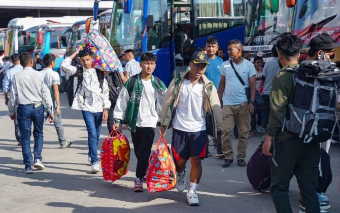 पुरा पढ्नुहोस२४ असोज, काठमाडौँ घटनास्थापनदेखि आज (फूलपाति) बिहीबार बिहान ६ बजेसम्म 8 लाखभन्दा बढी यात्रु काठमाडौंबाट बाहिरिएका छन् । नेपाल यातायात व्यवसायी राष्ट्रिय महासङ्घका अध्यक्ष विजय स्वारले अहिलेसम्म आठ लाख यात्रु दसैँ मान्न काठमाडौँ उपत्यकाबाट बाहिरिएको बताए...