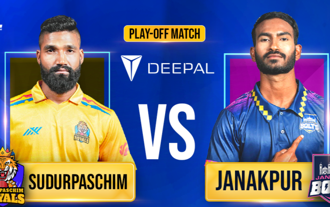 पुरा पढ्नुहोस३ पुस, काठमाडौं नेपाल प्रिमियर लिग एनपीएल क्रिकेटको पहिलो क्वालिफायर खेलमा सुदूरपश्चिम रोयल्स र जनकपुर बोल्ट्स खेल्दै छन् । खेल दिउँसो १ बजेदेखि कीर्तिपुरस्थित त्रिवि क्रिकेट मैदानमा सुरू हुने छ । यस खेललाई हाइ भोल्टेज भिडन्तका...
