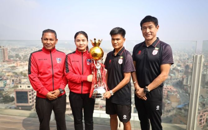 पुरा पढ्नुहोस१४ फागुन, काठमाडौं फोर नेसन्स कप च्याम्पियनसिप महिला फुटबलको उपाधिका लागि आज नेपाल र म्यानमारबीच प्रतिस्पर्धा हुँदैछ। खेल त्रिपुरेश्वरस्थित दशरथ रंगशालामा साँझ ६ बजे सुरु हुनेछ। अहिलेसम्म कुनै उपाधि जित्न नसकेको नेपाली महिला टोली पहिलो उपाधि...