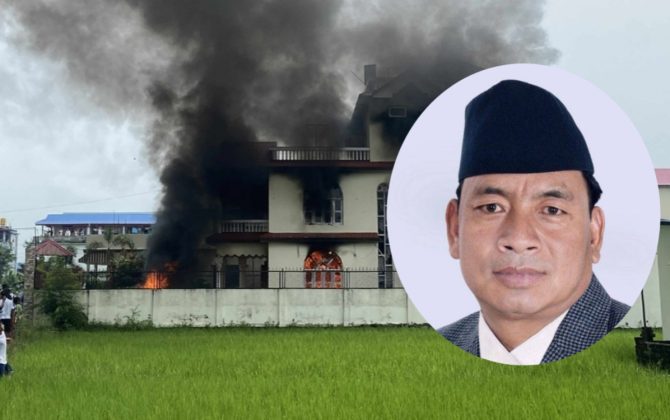 सञ्चारमन्त्री पृथ्वीसुब्बा गुरुङको घरमा आन्दोलनकारीले लगाए आगो