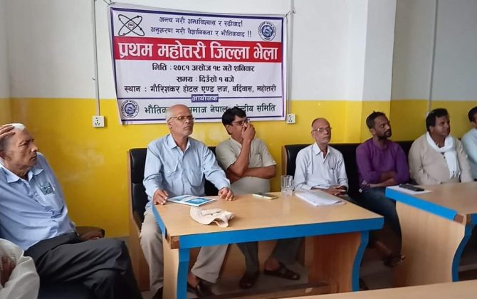 पुरा पढ्नुहोस२० असोज, महोत्तरी भौतिकवादी समाज नेपालको केन्द्रीय समितिको आयोजनामा सनिबार प्रथम महोत्तरी जिल्ला भेला बर्दिबासमा सम्पन्न भएको छ । भेलामा बोल्दै केन्द्रीय सदस्य रोशन जनकपुरीले भौतिकवादी समाज नेपाल कुनैपनि कम्युनिस्ट पार्टीकाे भातृसंगठन होइन , यो सम्पूर्ण...