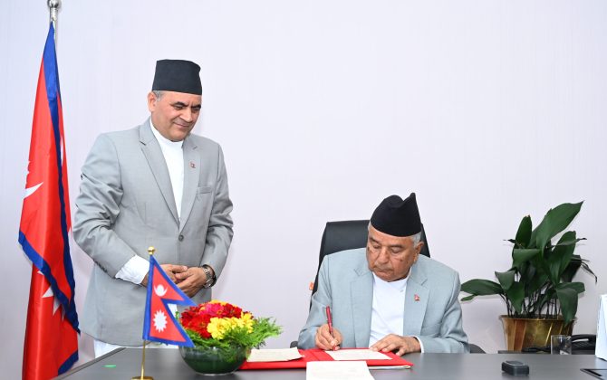 पुरा पढ्नुहोस५ मंसिर, काठमाडौँ राष्ट्रपति रामचन्द्र पौडेलले नेपाल विशेष सेवा (दोस्रो संशोधन) अध्यादेश, २०८२ जारी गरेका छन्। राष्ट्रपतिको कार्यालयद्वारा आज प्रेषित विज्ञप्तिमा राष्ट्रपति पौडेलले नेपालको संविधानको धारा ११४ को उपधारा (१) बमोजिम नेपाल सरकार मन्त्रिपरिषद्को सिफारिसमा अध्यादेश...