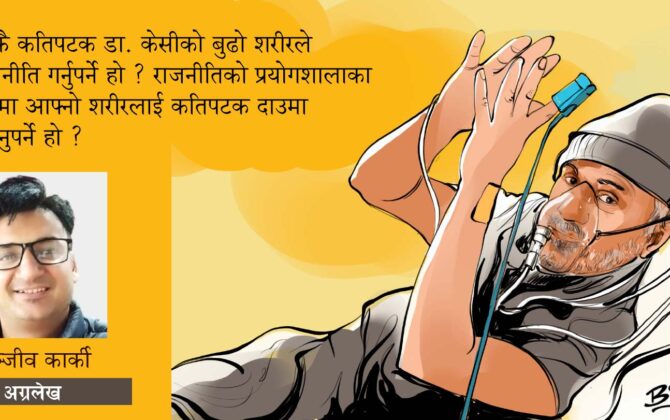 अझै कतिपटक डा. केसीको बुढो शरीरले राजनीति गर्नुपर्ने हो ? राजनीतिको प्रयोगशालाका रूपमा आफ्नो शरीरलाई कतिपटक दाउमा राख्नुपर्ने हो ? मुलतः शरीरका माध्यमबाट गरिने सम्पूर्ण गतिविधि शरीर राजनीति हो । कमजोर शरीरमाथि बलियो शरीरले गर्ने शोषण,...