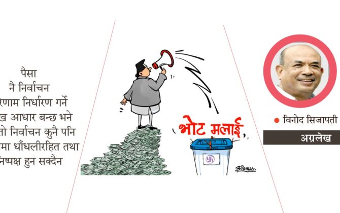 v जुनसुकै स्रोतबाट जे–जसरी गरिए पनि निर्वाचनमा हुने खर्चको असुली अन्ततोगत्वा विपन्न नेपाली नागरिकबाटै गरिने हो निर्वाचन धान्न नसकिने गरेर महँगो भयो’ सचेत राजनीतिककर्मी तथा नागरिकबाट घरीघरी सुनिन्छ, यो गुनासो । निर्वाचन परिणामले विकास प्रक्रियालाई गतिशील तुल्याउन...