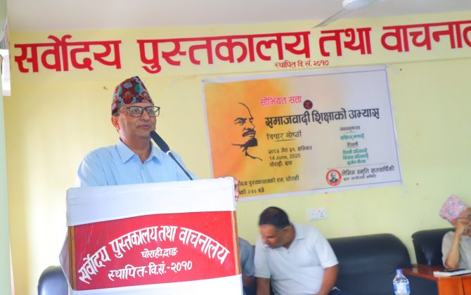पुरा पढ्नुहोस३१ जेठ, दाङ दाङको घोराहीमा अवस्थित सर्वोदय पुस्तकालयको सभाहलमा “सोभियत सत्ता र समाजवादी शिक्षाको अभ्यास” विषयक विचार गोष्ठी सम्पन्न भएको छ । गोष्ठीमा समाजवादी विचार, शिक्षाको वर्गीय दृष्टिकोण, सोभियत सत्ता अन्तर्गतको शिक्षा प्रणाली र वर्तमान नेपाली सन्दर्भमा...