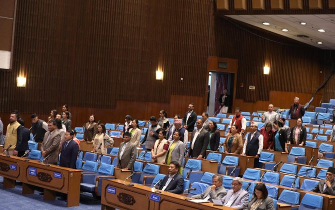 पुरा पढ्नुहोस३० जेठ, काठमाडौं राष्ट्रिय स्वतन्त्र पार्टी (रास्वपा) र राष्ट्रिय प्रजातन्त्र पार्टी (राप्रपा) को अवरोधकैबीच प्रतिनिधिसभा बैठक अघि बढेको छ । रास्वपा र राप्रपाका सांसदहरूले विरोध गरिरहँदा सभामुख देवराज घिमिरेले संसद्को कार्यसूची अघि बढाएका हुन् । सभामुख घिमिरेले...