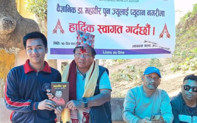 पुरा पढ्नुहोस१० चैत, प्युठान देशव्यापी रुपमा पुस्तक बिक्री अभियानमा निस्किएका वैज्ञानिक महावीर पुन यतिबेला प्युठान मा आइपुगेका छन् । पुनलाइ सनिबार लायन्स क्लव अफ प्युठानले जुम्रीमा स्वागत गरेको छ। प्युठानमा रहेका महावीरले पुस्तक बिक्रीबाट प्राप्त भएको सबै...