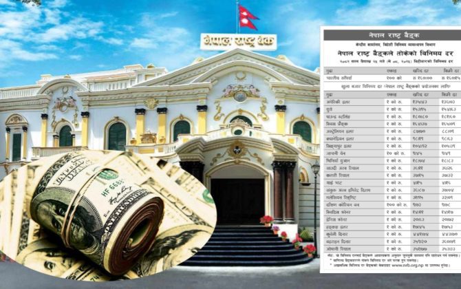 पुरा पढ्नुहोस२५ वैशाख, काठमाडौं नेपाल राष्ट्र बैङ्कले आजका लागि विदेशी मुद्राको विनिमय दर निर्धारण गरेको छ । राष्ट्र बैङ्कका अनुसार अमेरिकी डलर एकको खरिददर १३५ रुपैयाँ ४३ पैसा र बिक्रीदर १३६ रुपैयाँ ०३ पैसा कायम भएको छ...
