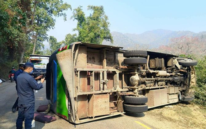 पुरा पढ्नुहोस११ फागुन, दाङ दाङको लमही–घोराही सडकखण्डमा यात्रु बस दुर्घटना हुँदा ९ जना घाइते भएका छन् । कपिलवस्तुको कृष्णनगरबाट दाङको तुलसीपुरतर्फ आउँदै गरेको लु २ ख ३२७७ नम्बरको यात्रु बस आज बिहान करिब १०:४० बजे चिसापानी भन्ने...