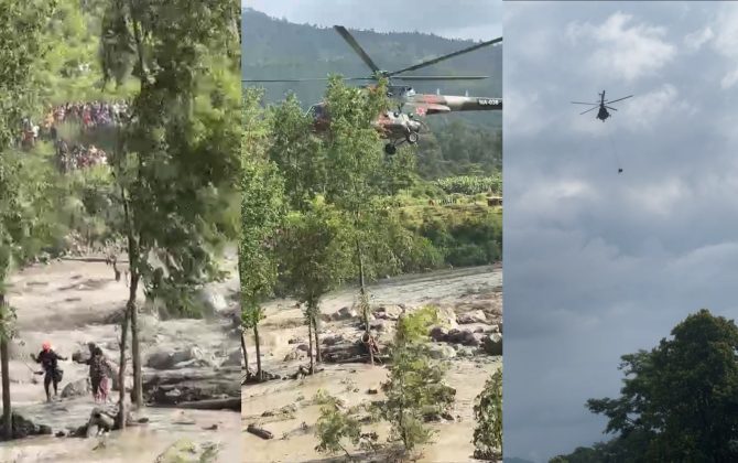 २४ असार, काठमाडौं नुवाकोटस्थित त्रिशूली नदीमा फसेका दुई जनाको हेलिकप्टरबाट उद्धार गरिएको छ । नुवाकोटको त्रिशूली बजार नजिक रहेको स्थानमा सोमबार राति जोखिममा परेपछि रुखमा चढेर बसेका दुई जनालाई हेलिकोप्टरबाट उद्धार गरिएको नेपाली सेनाका प्रवक्ता राजाराम...