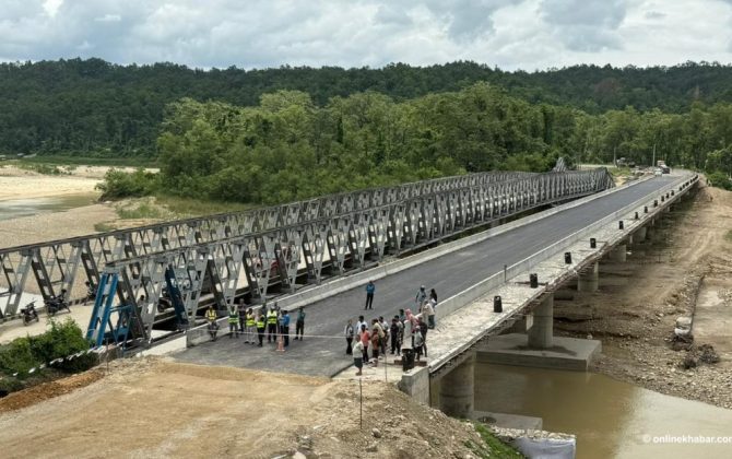 पुरा पढ्नुहोस१९ असार, काठमाडौं पूर्वपश्चिम राजमार्गअन्तर्गत नवलपरासीको विनयी खोलामा नयाँ पुल सञ्चालनमा आएको छ । पुल नहुँदा सडक अवरुद्ध भइरहने विनयी खोलामा आजदेखि नयाँ पुल सञ्चालनमा आएको नागढुंगा–मुग्लिन सडकको पूर्वी खण्डका सूचना अधिकारी शिव खनालले जानकारी दिए...