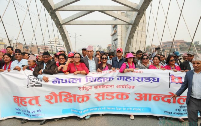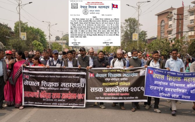 पुरा पढ्नुहोसकेही हप्तादेखि शिक्षक आन्दोलन काठमाण्डौको माइतीघर र बानेश्वर क्षेत्रमा चलिरहेको छ। शिक्षामा भएको असन्तुलनका कारण, शिक्षकहरूको आवाज अधिक बलियो र संगठनात्मक बनिरहेको छ। शिक्षकहरूले लामो समयदेखि शैक्षिक क्षेत्र सुधार्नका लागि विभिन्न चरणमा संघर्ष गरिरहेका...