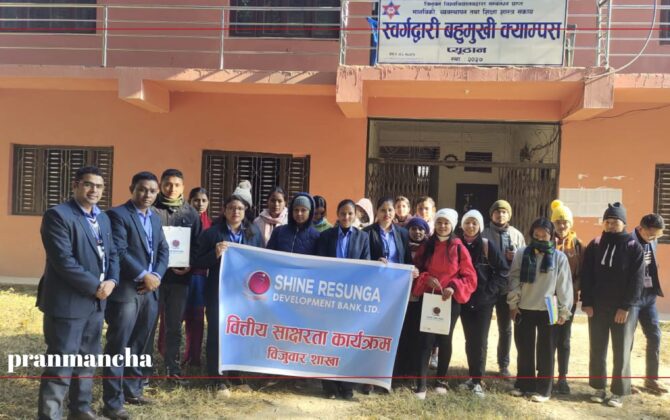 पुरा पढ्नुहोसपुष १३ प्यूठान।स्वर्गद्वारी बहुमुखी क्याम्पसमा शाइन रेसुङ्गाले वित्तीय साक्षरता कार्यक्रम सम्पन्न गरेको छ। साईन रेसुङ्गा बैंक बिजुवार शाखाको मुख्य आयोजनामा भएको साक्षरता कार्यक्रममा ६० जना बढी विद्यार्थीको उपस्थिति रहेको थियो। सोहि कार्यक्रममा वित्तीय जानकारी,डिजिटल प्रोडक्टहरुका विषयमा...