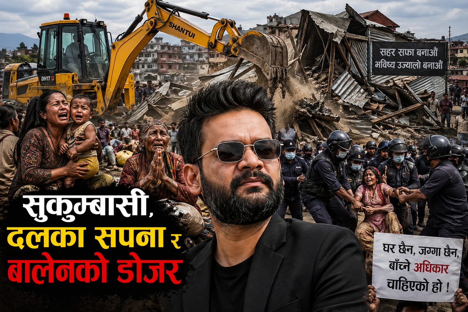 बुटवल, विराटनगर, इटहरी, हेटौँडा, झापा लगायत देशभरका कैयौँ सहरका सुकुम्बासी बस्तीमा राज्यले डोजर आतंक मच्याइरहँदा चर्काे खडेरीको तातो हावामा थातबासै उठीबासका कारुणीक चित्कारहरू तपाईं हाम्रा मोबाइल र टिभीका स्क्रिनहरूमा छ्याप्छ्याप्ति देखिरहेका छौँ । दुधे बच्चा च्यापेर सुरक्षित...